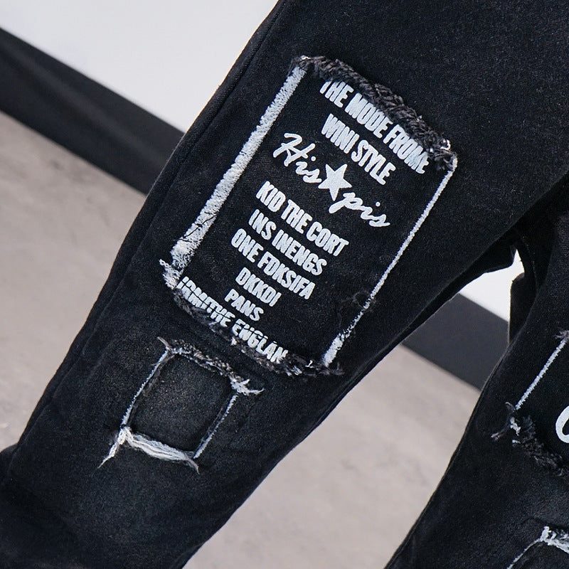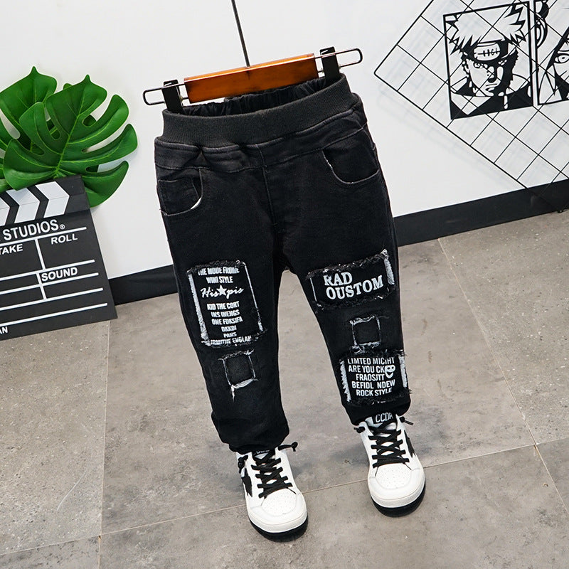 Children's Mid-waist Plus Cashmere Warm Denim Trousers