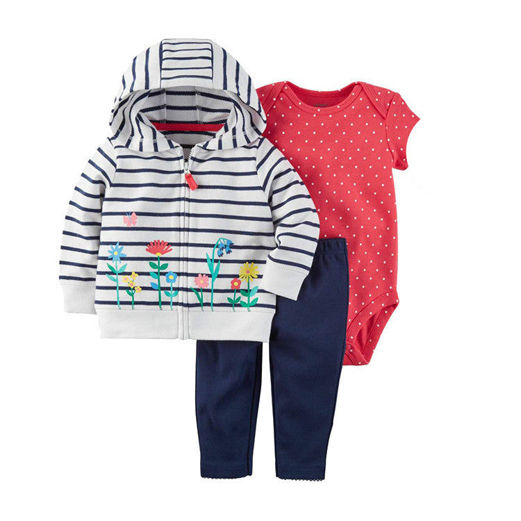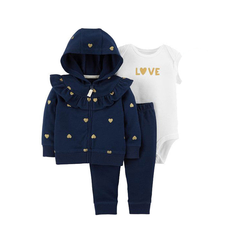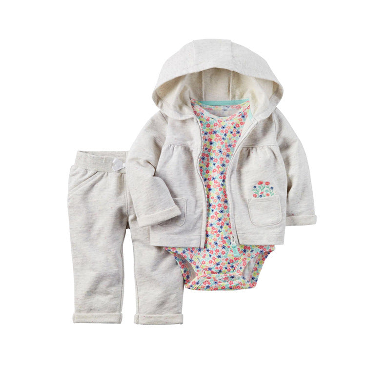 Clothing Sweater Boys And Girls Foreign Trade Hooded Long-Sleeved Baby Three-Piece Suit