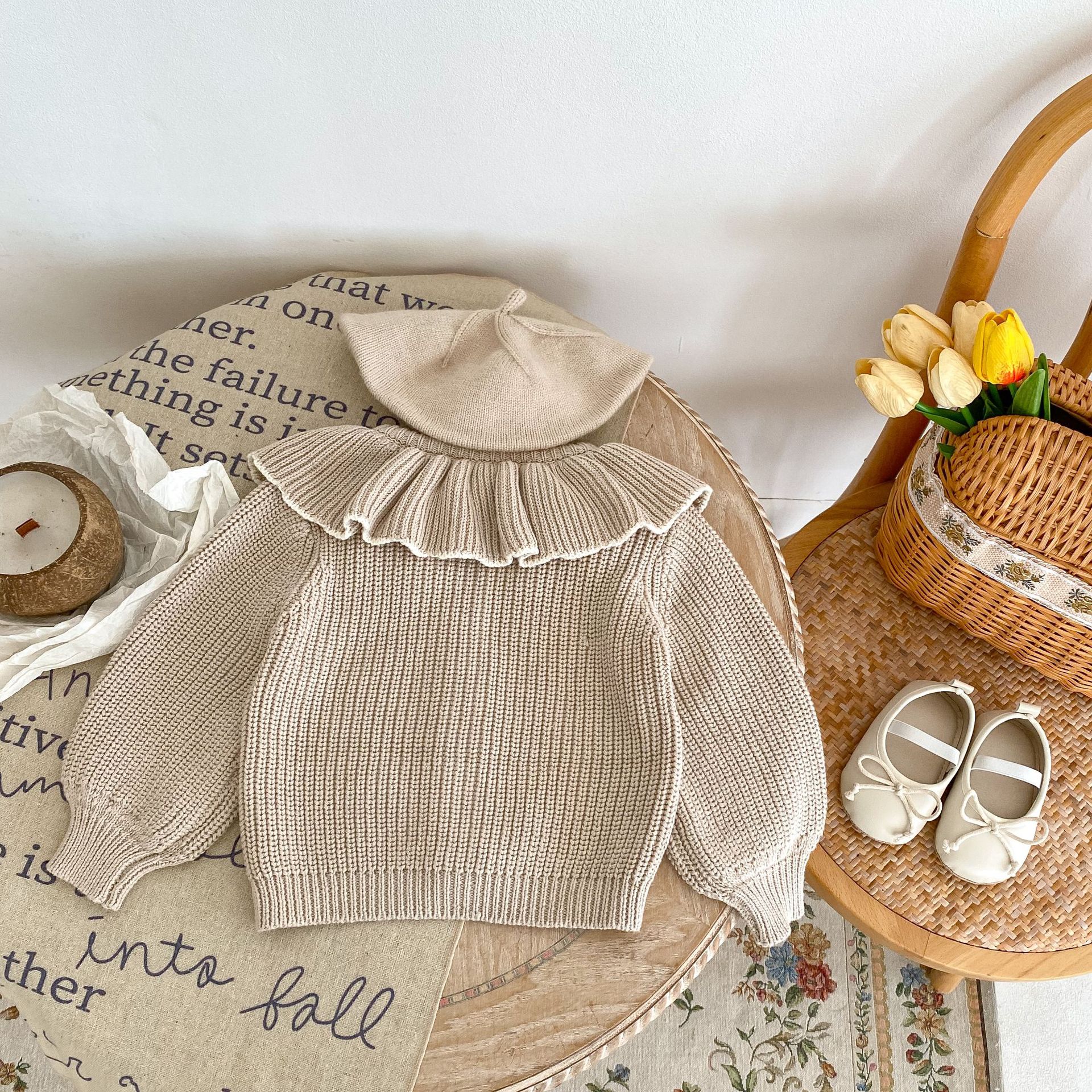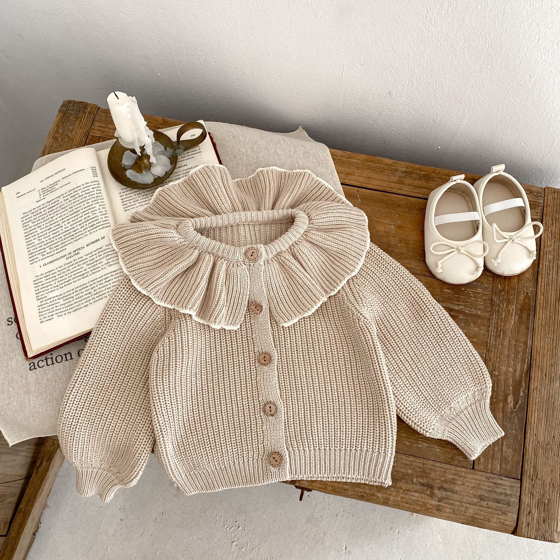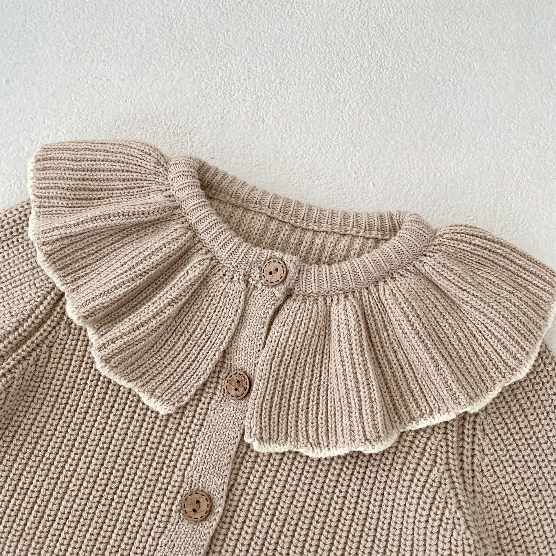Baby Girl Ruffled Bow Tie Knitted Coat Small Cardigan Sweater