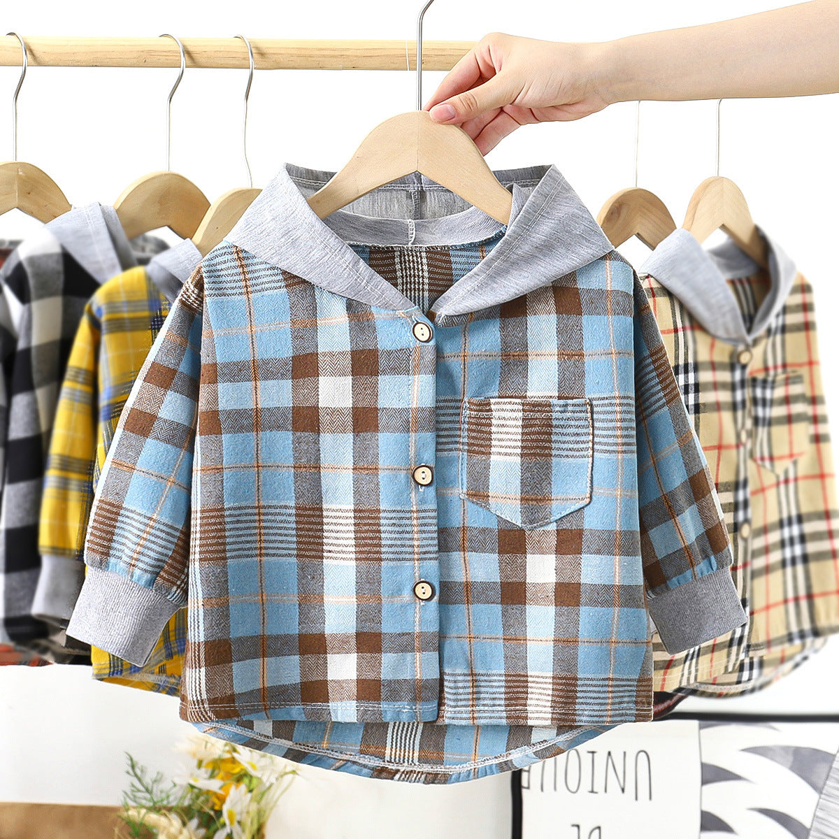 Color: shirt black and gray plaid, shirt Orange blue plaid pattern, shirt yellow plaid, shirt black red plaid, shirt blue and brown plaid, shirt brown and gray plaid
