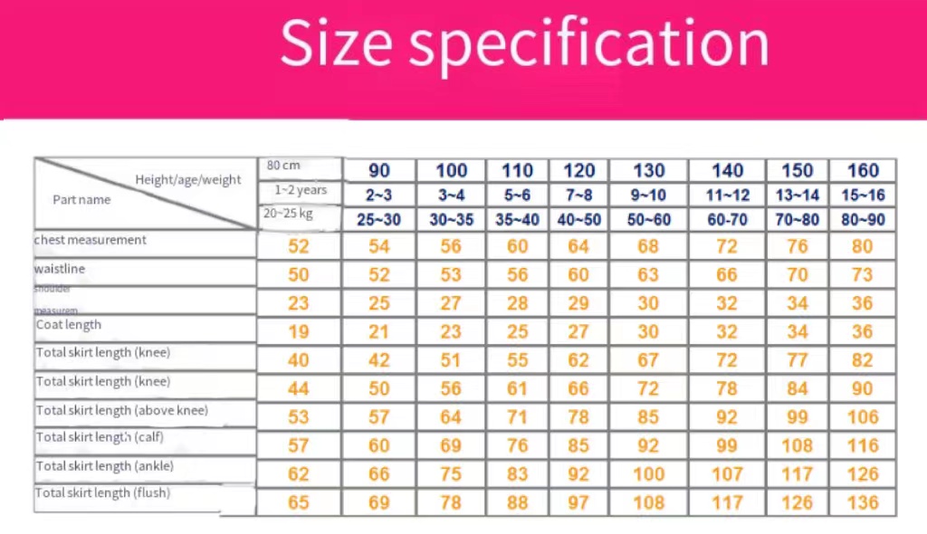 Size: 110cm/120cm/130cm/140cm/150cm/160cm