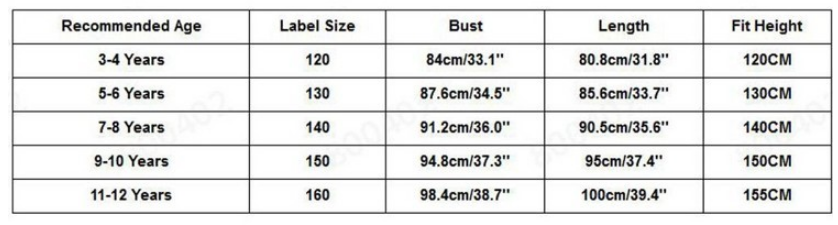Size:3-4T 5-6T 7-8T 9-10T 11-12T