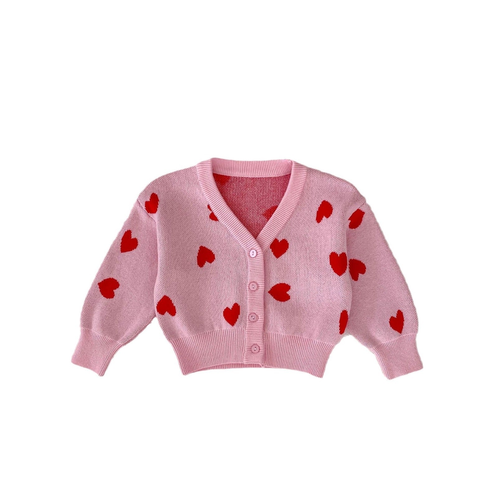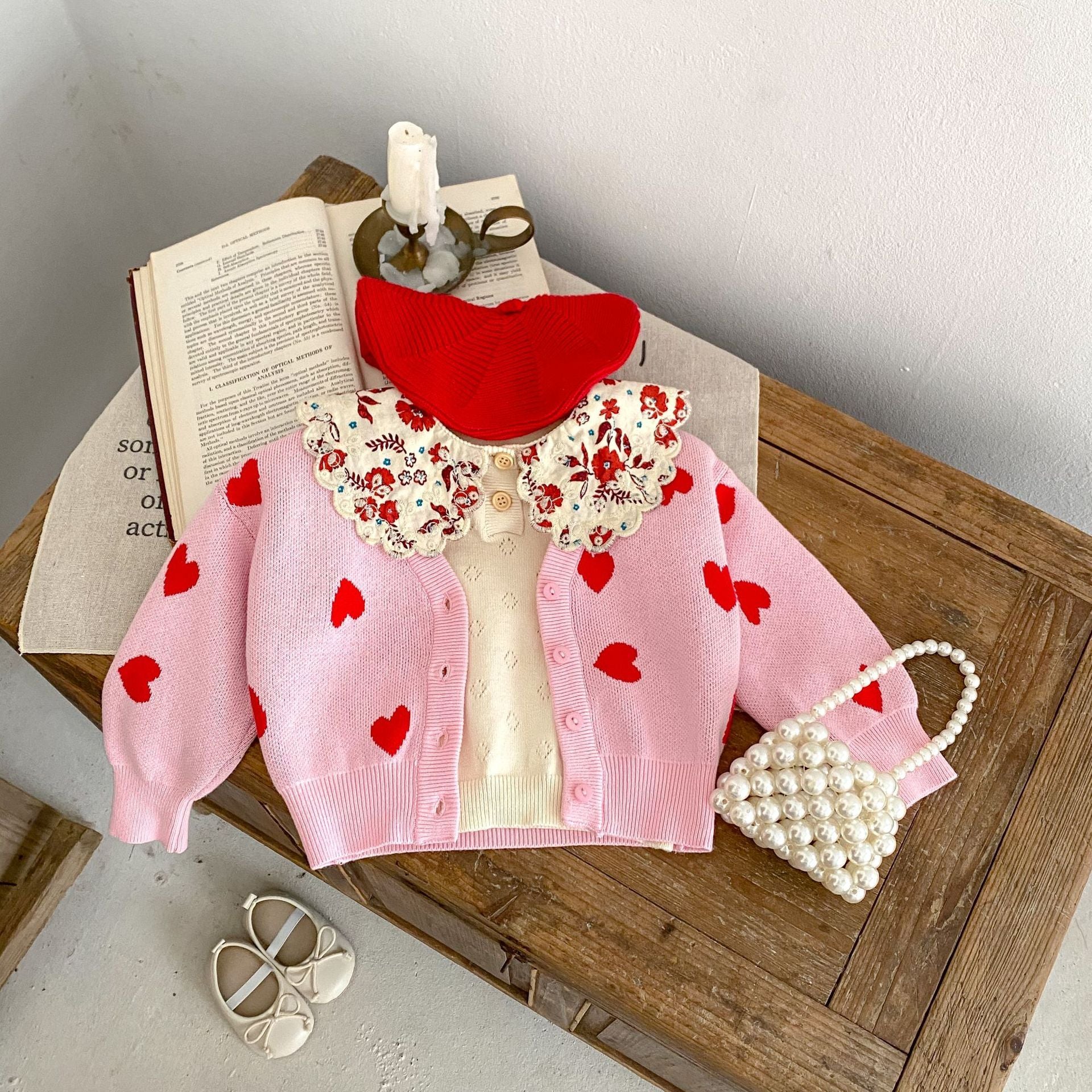 Autumn Baby Girl Infant Children's Pink Heart-shaped Large V-neck Knitted Coat Cardigan Cute Sweater