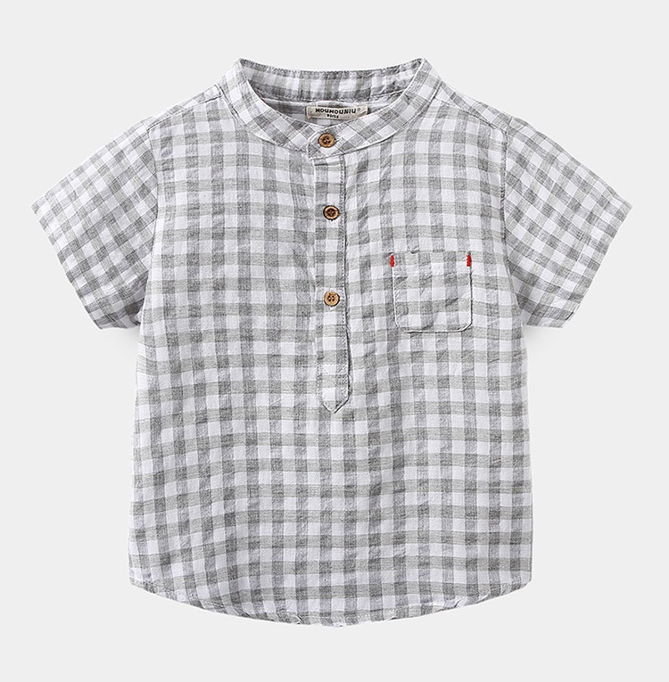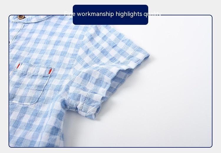 • Children's Cotton Blue Short-sleeved Shirt Fashion Casual Short-sleeved Plaid Shirt
